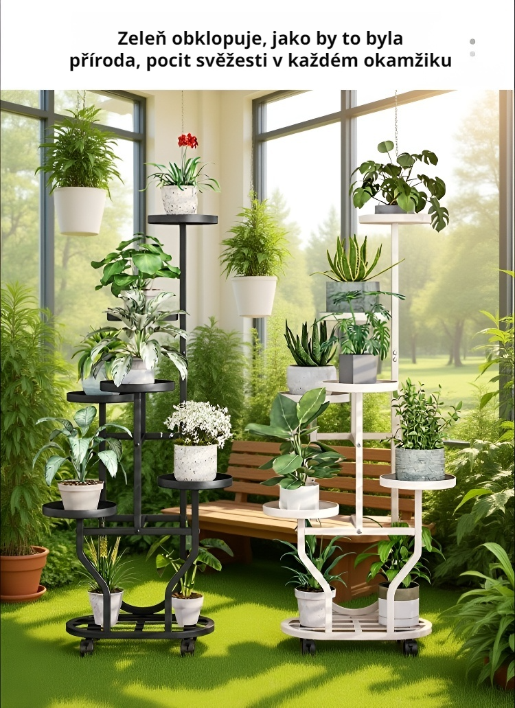 ● Pohyblivý stojan na pokojové rostliny vám umožní snadno přesouvat květiny po místnosti díky 360° otočným kolečkům, což šetří váš čas i energii. ● Moderní design stojanu skvěle doplní interiér vašeho domova, zatímco pevná konstrukce zajistí bezpečné umístění i těžších květináčů. ● Kvalitní materiály zaručují dlouhou životnost stojanu, odolnost vůči vlhkosti a snadnou údržbu, takže vaše rostliny budou vždy v bezpečí. ● Díky otočným kolečkům můžete rostliny snadno přemístit za sluncem nebo je pohodlně přesunout při úklidu bez rizika poškození podlahy.
